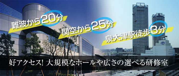 泉大津駅から徒歩3分、難波から20分、関空から25分。便利な貸会議室、テナントはテクスピア大阪!