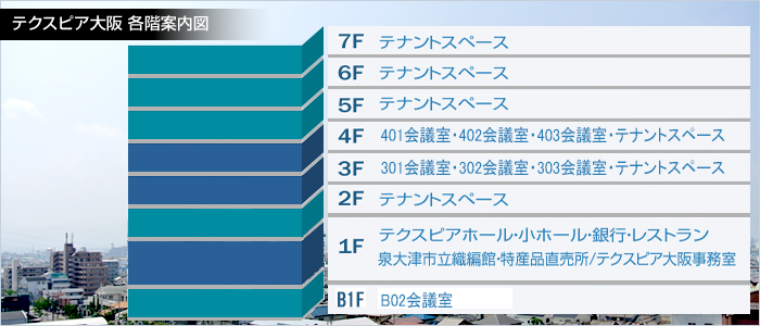 泉大津駅から徒歩3分、難波から20分、関空から25分。便利な貸会議室、テナントはテクスピア大阪!