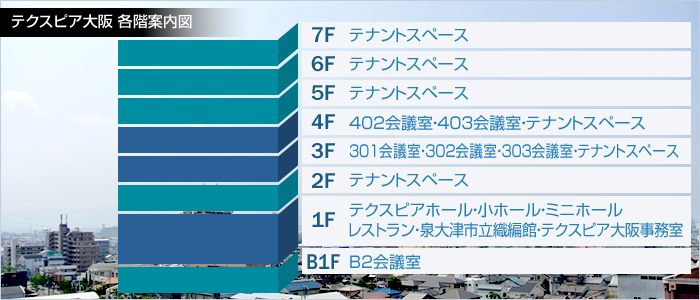 泉大津駅から徒歩3分、難波から20分、関空から25分。便利な貸会議室、テナントはテクスピア大阪!